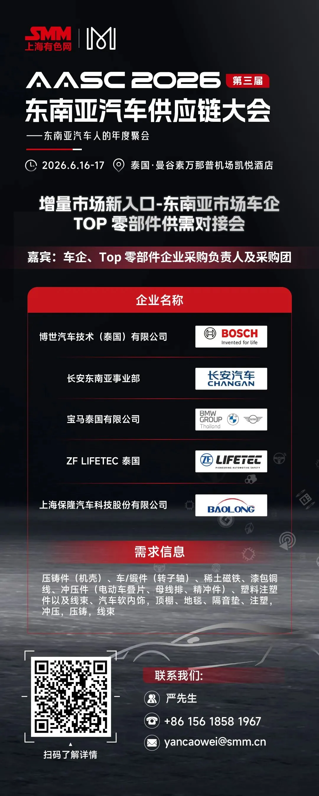 在2026SMM东南亚汽车供应链大会,我们为真正渴望“拿订单、进名录”的供应链企业,单独开辟了一个下午。这是大会第二天下午的专属闭门环节:供需对接会。