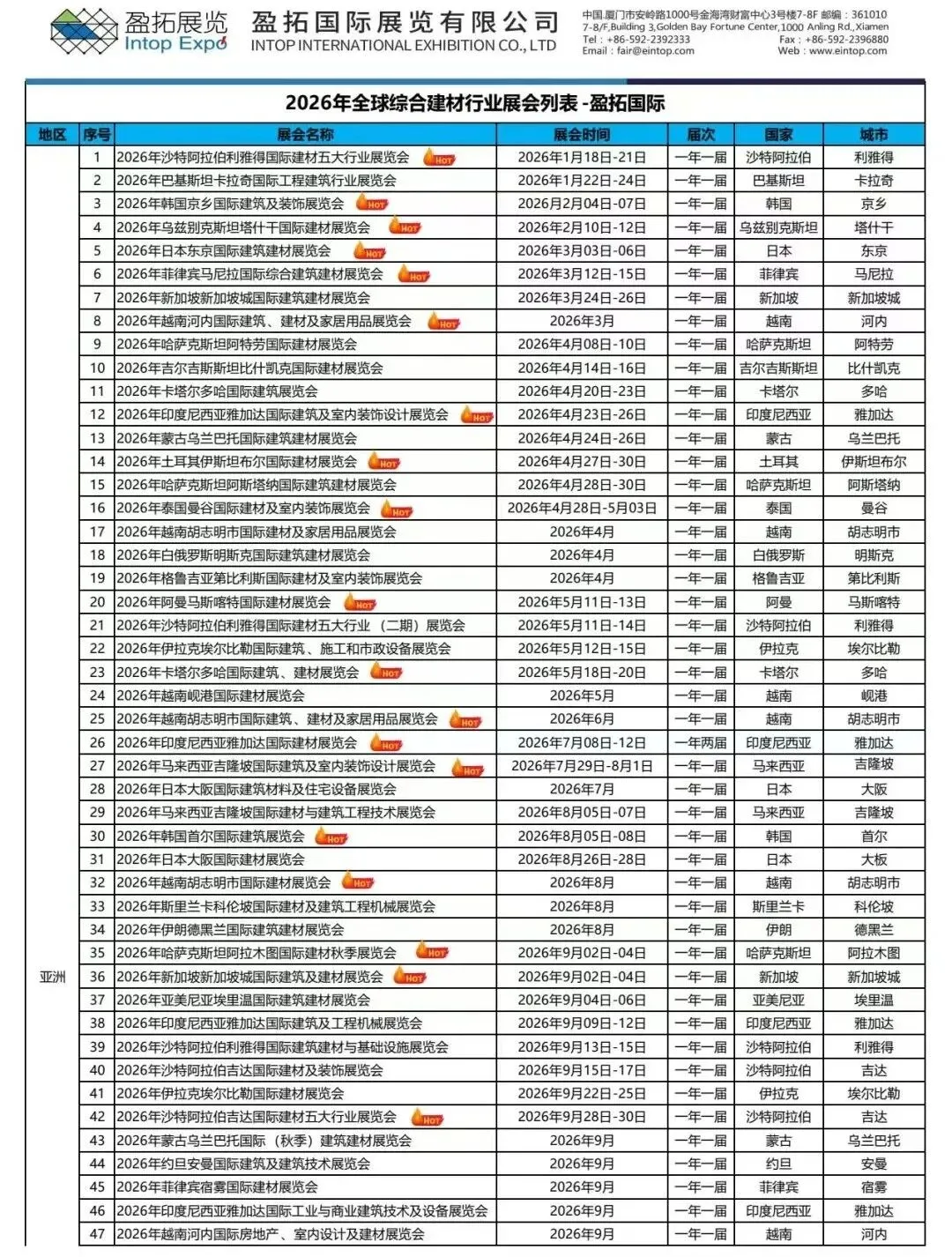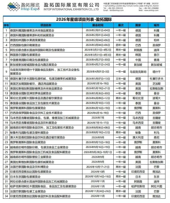 【展会列表】盈拓:展会清单完整汇总