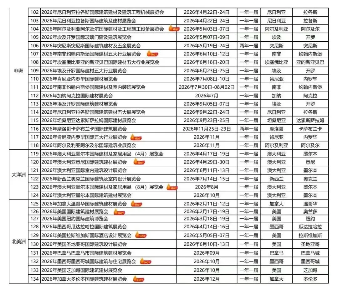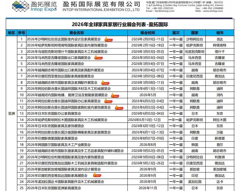 外贸人速藏!? 为解决大家找展难、选展乱、对接低效的痛点,我们整理了行业头部展览公司的全品类展会完整列表,覆盖餐饮酒店、能源、汽车后市场、礼品、纺织珠宝等核心赛道,从国内主场到海外布局,从专业垂直展到全产业链生态展,一手资源全汇总,帮你精准匹配参展、拓客、对接需求,省时省力找高价值展会!本次整理的展会列表,聚焦MIE中东展览集团、东方益达、盈拓、去展网、米奥兰特、等行业头部展览公司,覆盖建材家居、能源石化、新能源汽车、礼品家居、纺织珠宝、孕婴童、等 10 + 核心产业,展会信息包含「举办时间 / 地点 / 展品范围 / 核心亮点 」四大维度,铺开海外重点布局展,适配传统外贸企业、跨境电商卖家、产业供应链企业、品牌方等不同主体的参展 / 对接需求。此系列列表堪称会展 / 外贸人的「找展工具书」,建议收藏 + 转发给团队小伙伴,避免错过优质展会资源!若需展位精准对接、展会定制咨询,或想了解某类展会的参展攻略、采购商资源,可直接私信我们;也欢迎在评论区留言你最关注的行业 / 区域展会,我们会优先更新对应干货~关注会展情报站,后续持续更新展会排期、行业趋势、参展技巧,带你在会展浪潮中精准抢占商机!