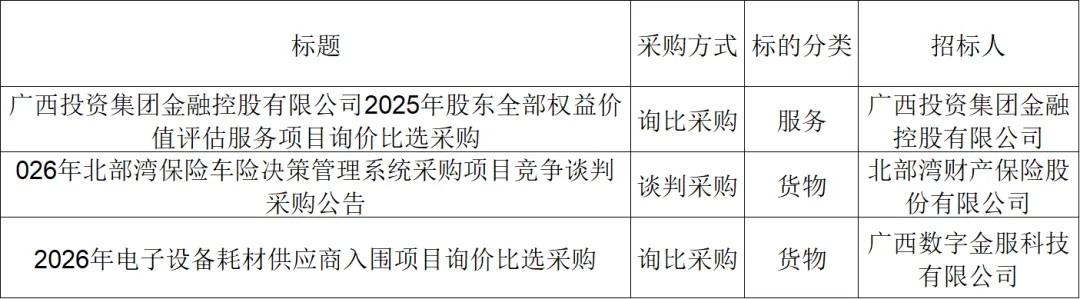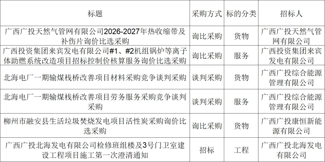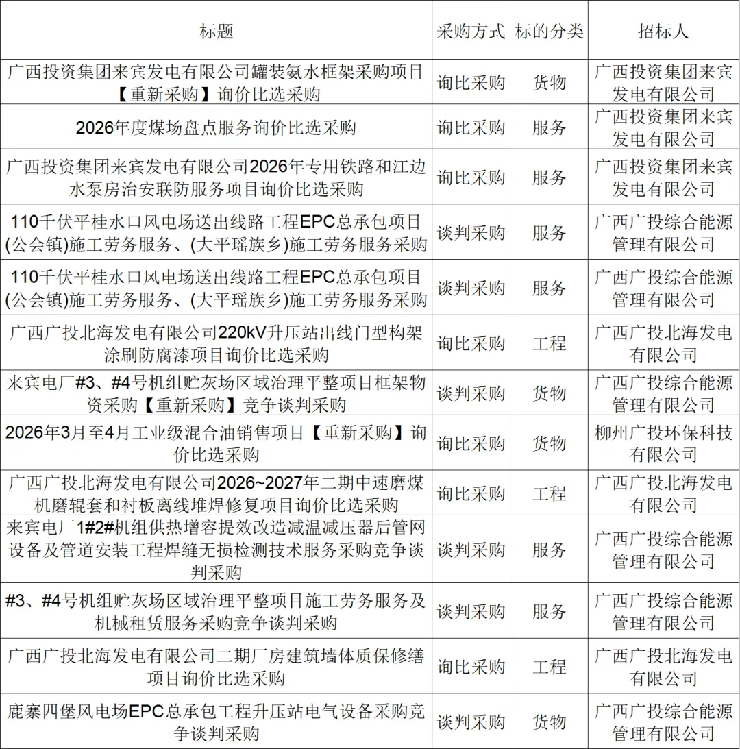 ●招采信息丨广投集团电子采购平台招标采购信息(2月2-4日)