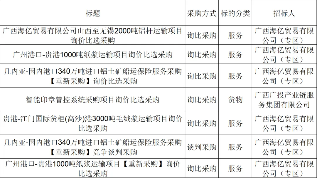 ●招采信息丨广投集团电子采购平台招标采购信息(2月5-8日)