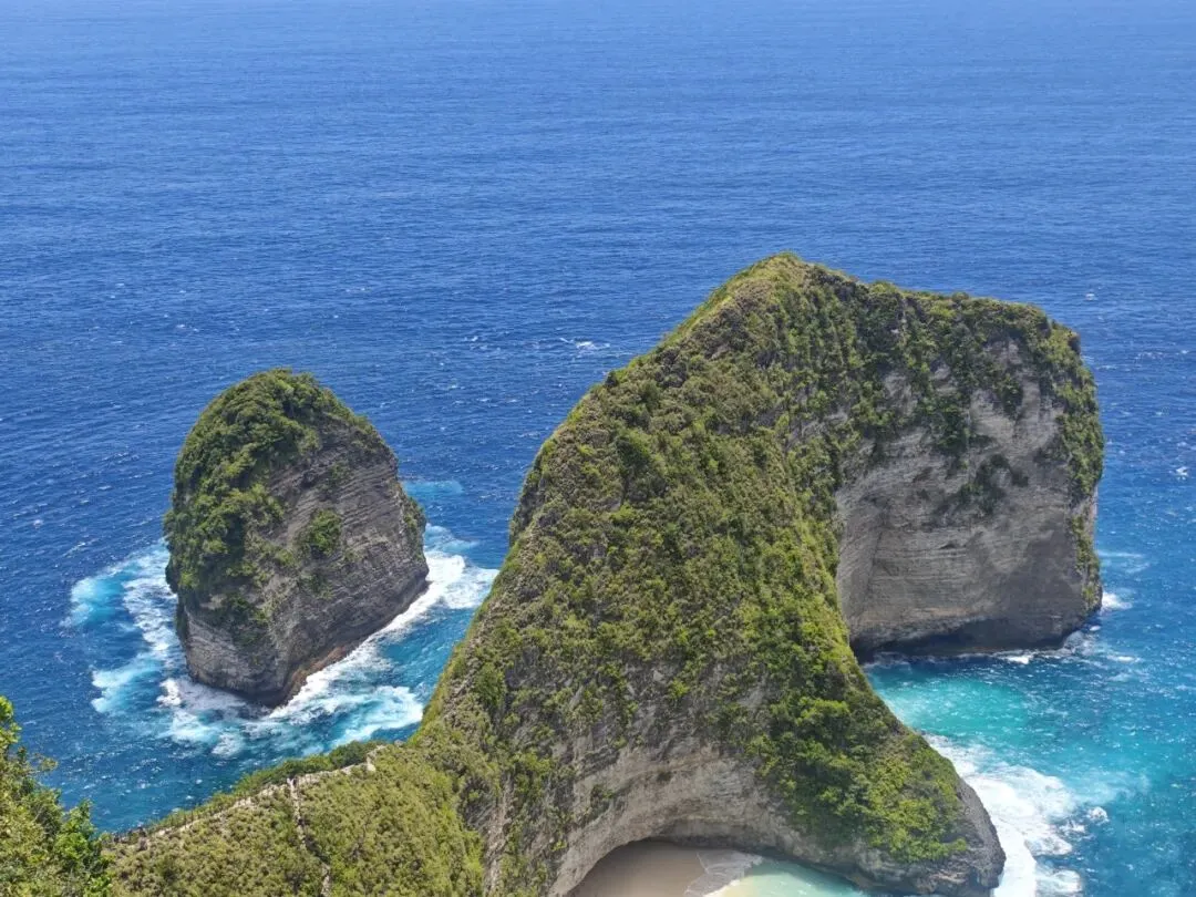精灵坠崖白沙衬碧海,形似灵物静卧海岸,视野壮阔。