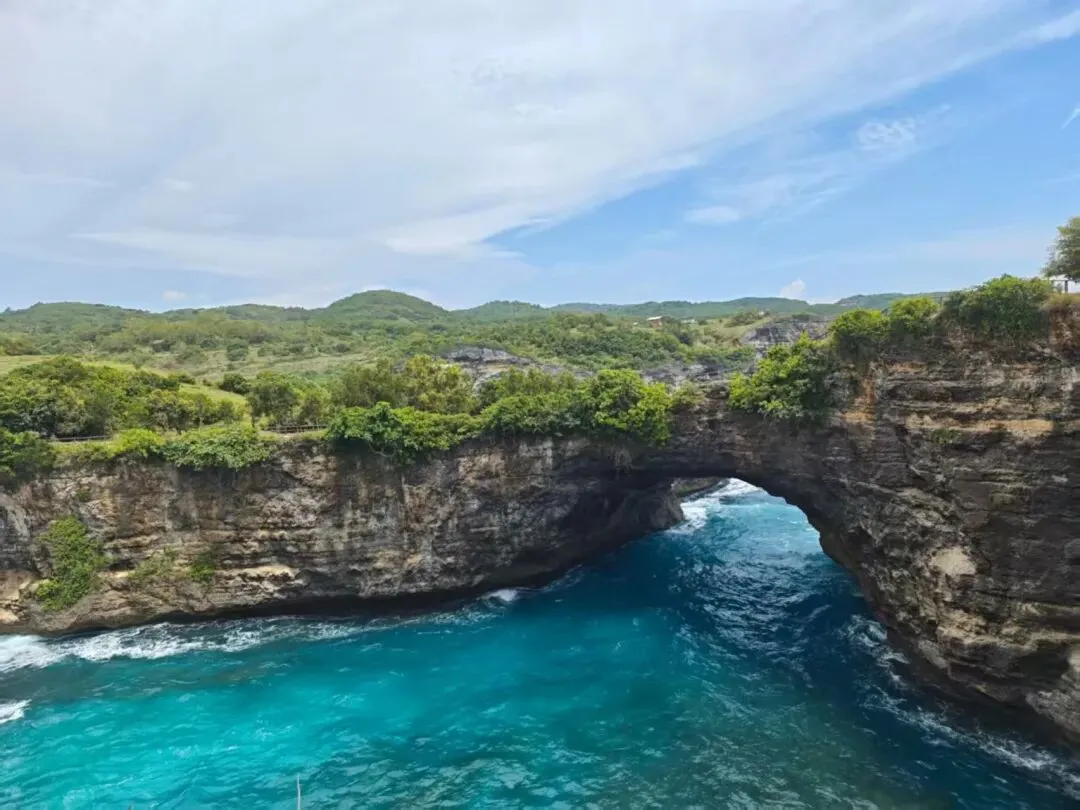 破碎沙滩天造拱桥,海风吹拂,惊涛拍岸,尽显自然磅礴。