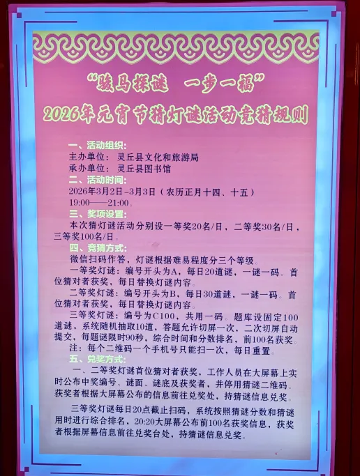 此外,我馆还将于3月2日至3月3日期间(正月十四、十五)在灯展现场举办“元宵节有奖猜灯谜”活动。活动采用现场猜谜、现场兑奖的形式,扫码即可参与,还有机会赢取丰厚奖品,欢迎大家前来打卡体验✨