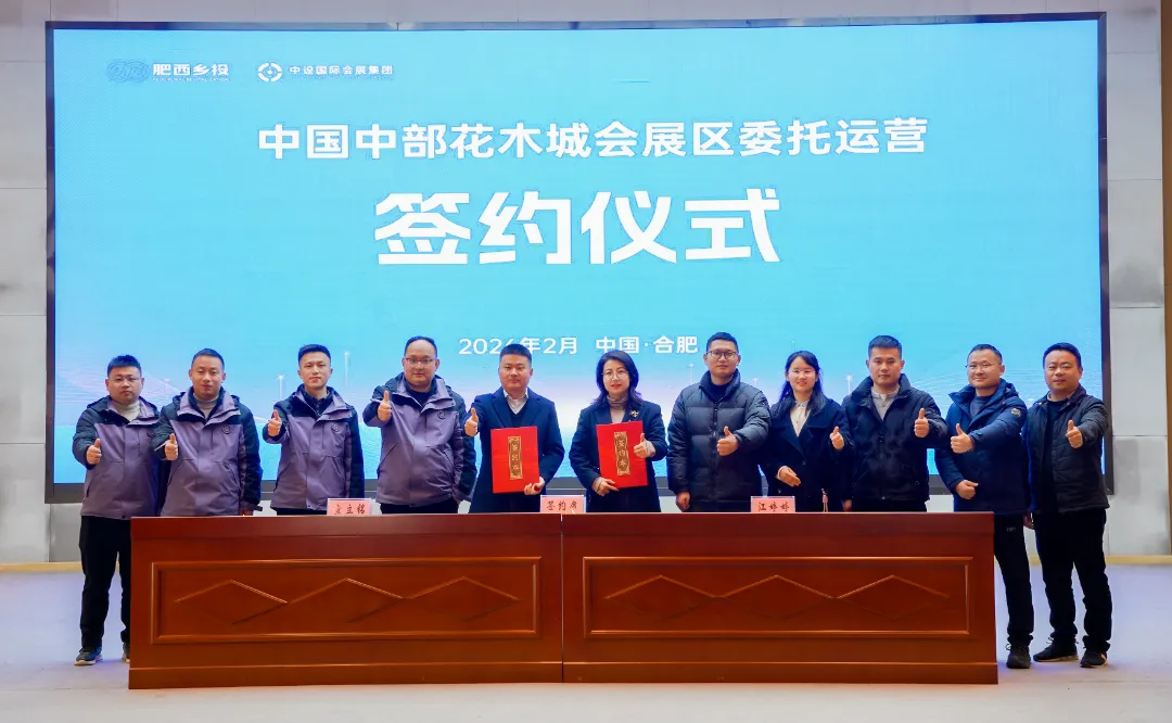 2月11日,肥西县乡村振兴投资集团(以下简称“肥西乡投集团”)全资子公司合肥派禾农业科技有限公司与中设国际会展集团(以下简称“中设会展”)旗下子公司安徽中设明德会展有限公司正式签署合作协议,就中国中部花木城会展区场馆委托运营事宜达成深度合作,开启双方优势互补、协同发展的新篇章。