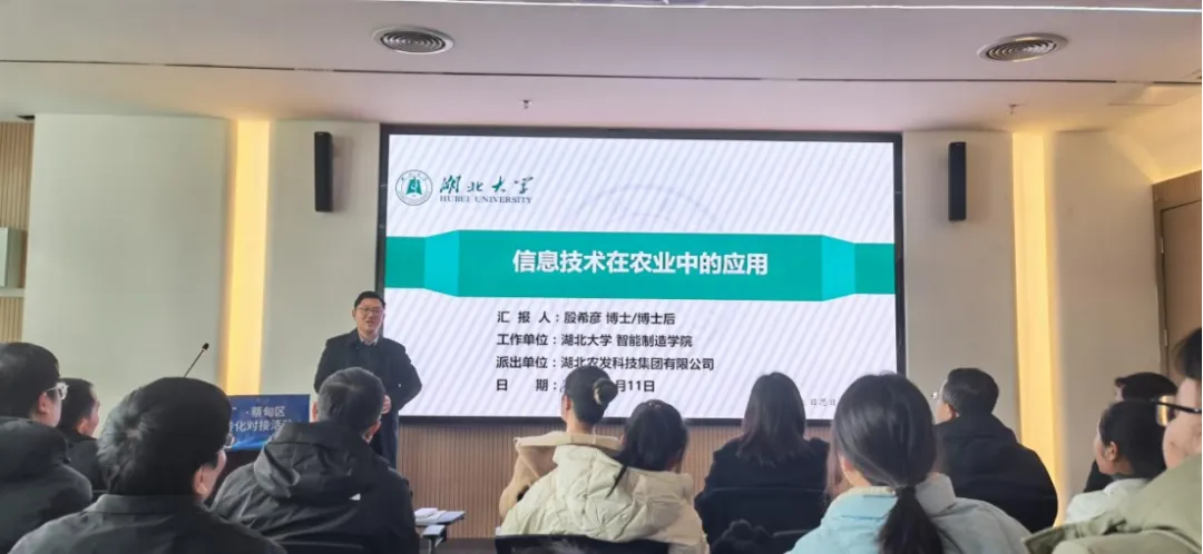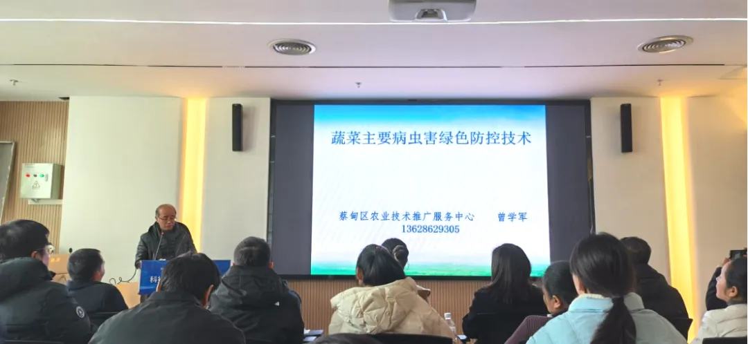 在项目路演环节,科创企业代表积极参与、现场掌声不断。湖北大学智能制造学院院务助理殷希彦博士登台分享,围绕《信息技术在农业中的应用》前沿成果,用鲜活的案例,生动诠释了信息技术如何赋能农业提质增效,赢得了现场的广泛关注;蔡甸区农业技术推广服务中心高级农艺师曾学军,详细推介《蔬菜主要病虫害绿色防控技术》,结合一线种植实践,讲解技术要点与应用价值,为农业从业者带来实用指引。