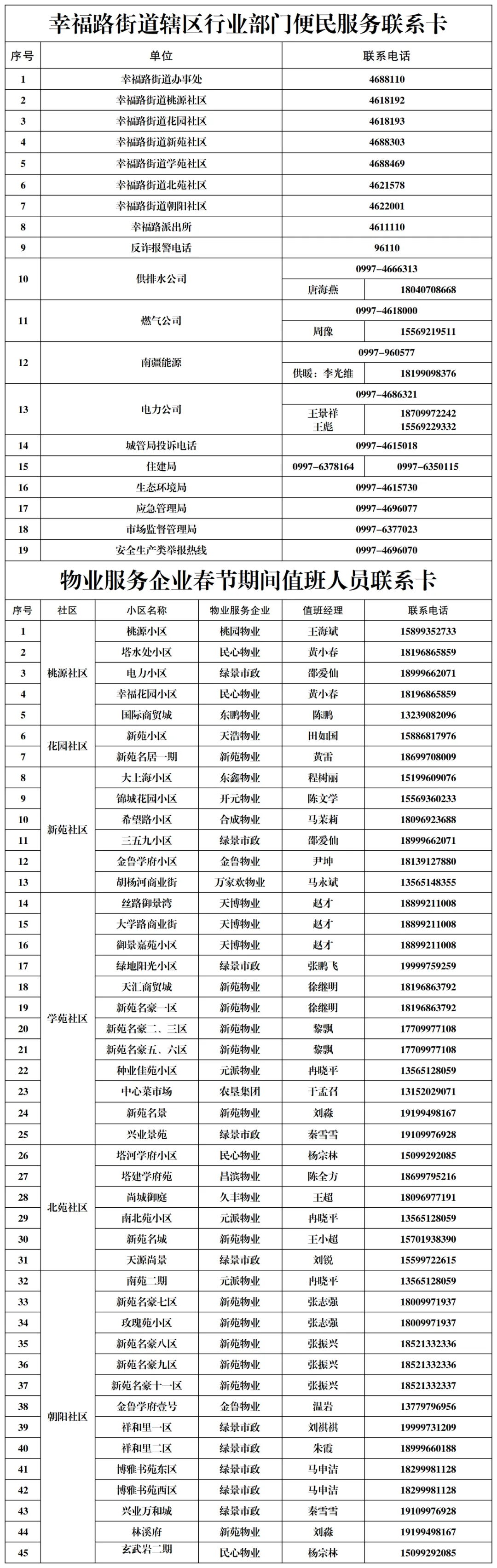 幸福路街道春节期间行业部门