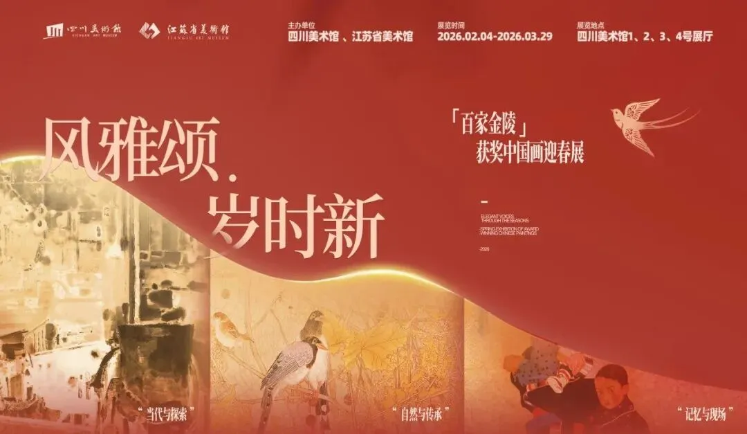 展览介绍:这场汇聚百家金陵获奖佳作的展览,以丹青为媒,让风雅古韵与岁时新景撞个满怀,既延续了祈福迎祥的传统意趣,又彰显了当代中国画的时代风华。