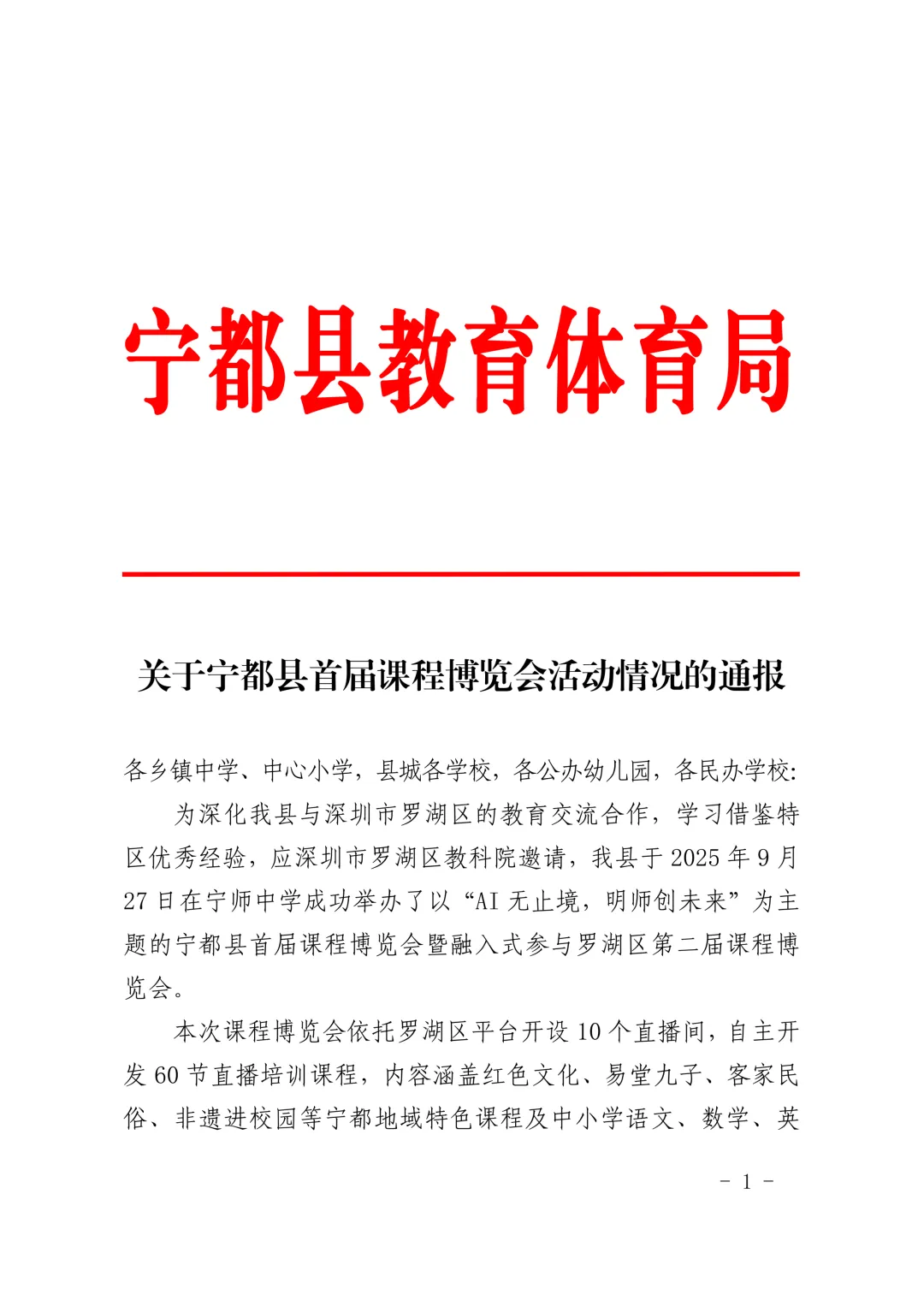 【宁都县】关于宁都县首届课程博览会活动情况的通报