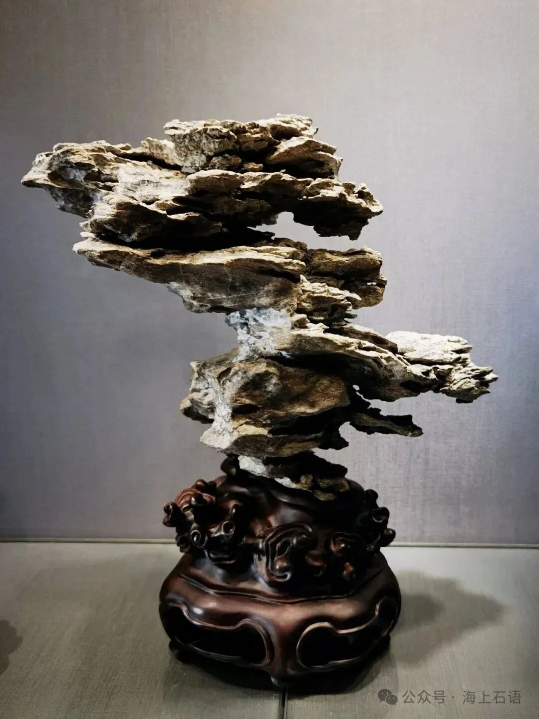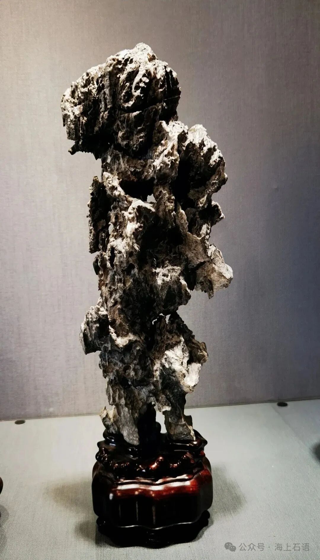 今日,“海上石语”平台介绍上石协新址展览空间中肖启纯老师的一组英石。