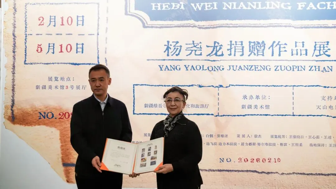 杨尧龙先生亲属杨天晴女士表示,近半个世纪以来,杨尧龙先生毅然扎根新疆,将自己的艺术追求,与新疆的发展紧密相连,用美术创作中的各种形式,记录了这片土地的变迁、描绘各族人民的生活,为新疆的美术事业,默默耕耘、奉献毕生。杨尧龙先生始终秉持着“爱一行、干一行,爱一行、精一行”的信念,他是扎根新疆的美术工作者、电影创作者,无论身份如何变化,无论经历多少风雨,他对美术的热爱从未减退,对这片土地的深情从未改变。愿杨尧龙先生的艺术精神,如这些跨越近九十年的作品一般,历久弥新、生生不息。