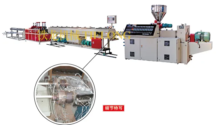 公司主要生产各种给排水、电力管材型材生产线设备、大口径高速缠绕管生产线、内肋管生产线、塑钢缠绕管生产线、PE管材生产线、PVC管材、电力管、硅芯管生产线及配套辅机。