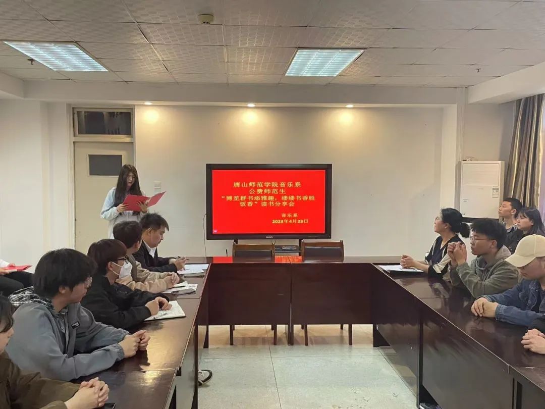 4月23日是第28个世界读书日,为营造“爱读书、读好书、善读书”的良好氛围,引导广大公费师范生积极参与到“全民阅读”中来,唐山师范学院音乐系公费师范生举行以“博览群书添雅趣,缕缕书香胜饭香”为主题的读书分享会。