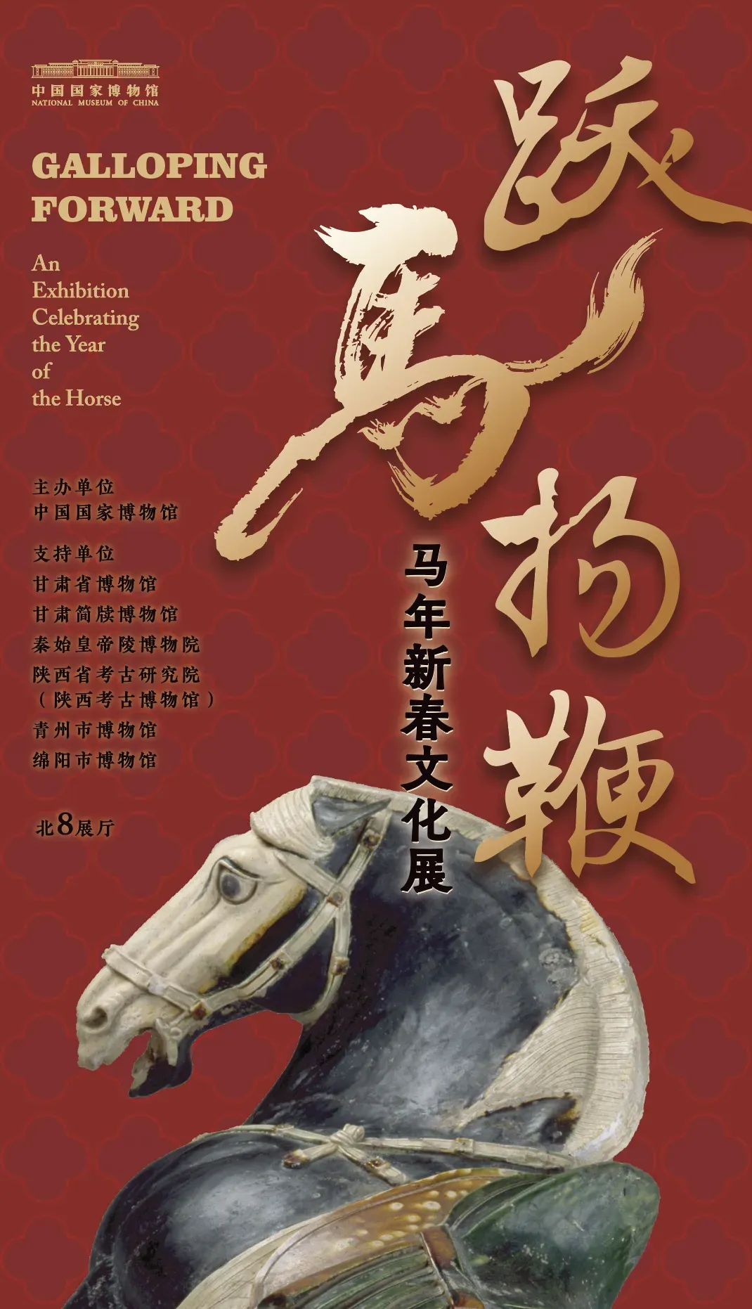 在丙午马年新春到来之际,由中国国家博物馆主办,甘肃省博物馆、甘肃简牍博物馆、秦始皇帝陵博物院、陕西省考古研究院(陕西考古博物馆)、青州市博物馆、绵阳市博物馆支持的“跃马扬鞭——马年新春文化展”在中国国家博物馆向公众展出。
