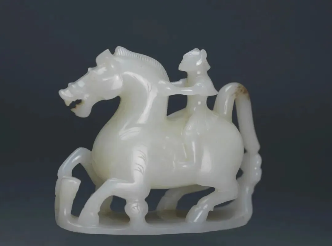 西汉 圆雕白玉仙人奔马 咸阳博物院藏