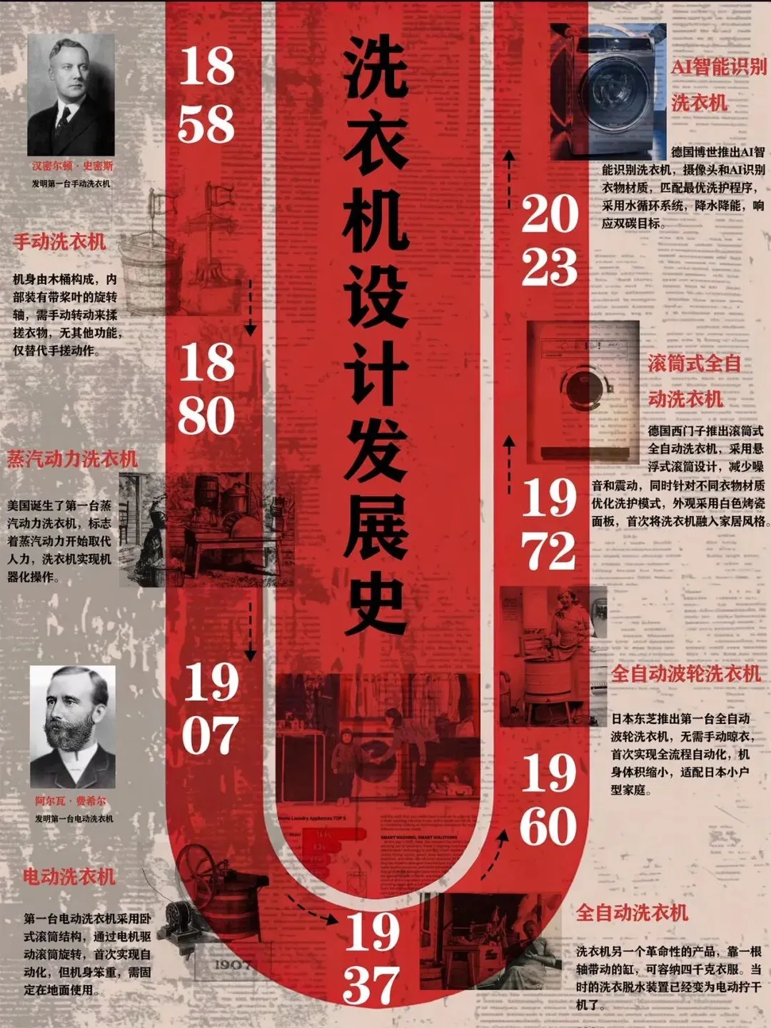 梳理从汉密尔顿·史密斯的手动洗衣机到博世AI智能洗衣机的脉络时,我清晰看到技术迭代的逻辑,更体会到工业设计始终围绕“人的需求”展开的核心。从早期解放人力的基本诉求,到如今适配精细化洗护、低碳环保的多元场景,设计的价值在时代变迁中愈发清晰。