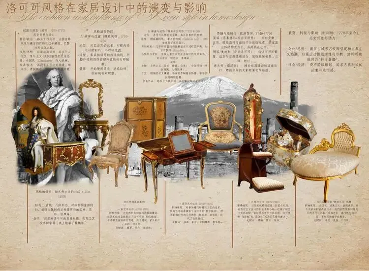 在本次“设计史图谱”作业中,我以“洛可可风格在家具设计中的演变和影响”为主题。通过梳理其从轻盈优雅到后续演变的历程,我更清晰地认识到洛可可风格在材料、工艺与装饰语言上对后世的深远影响。这一过程锻炼了我信息整合、逻辑梳理与视觉化表达的能力,也让我学会如何将抽象史实转化为清晰易懂的图谱。
