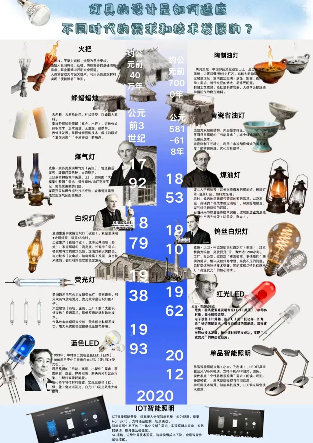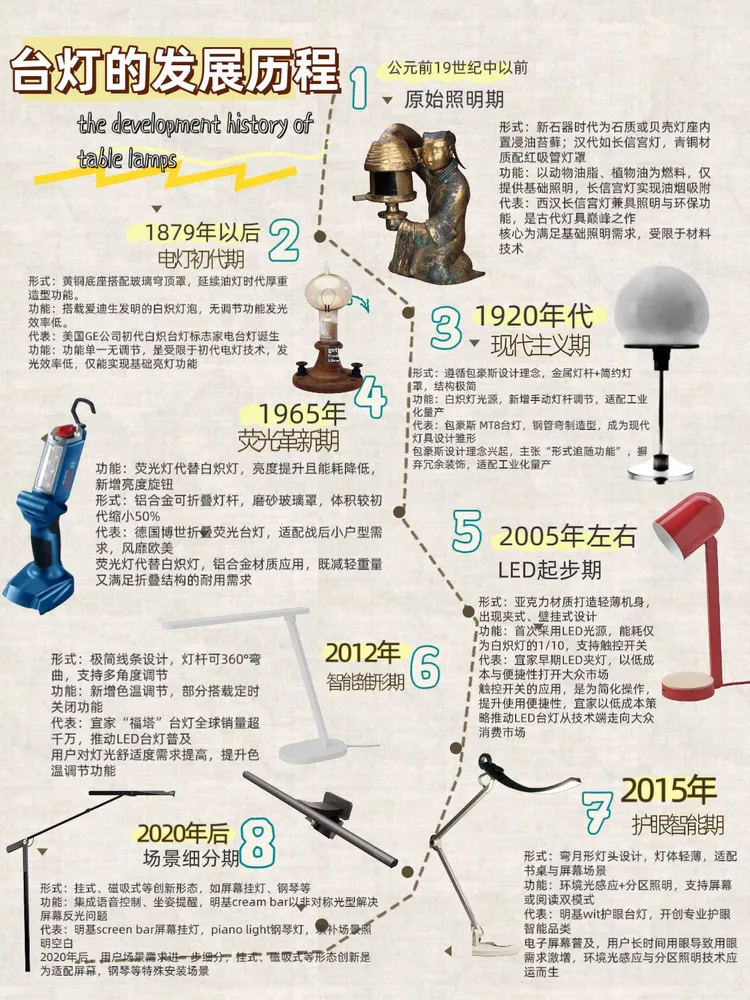 参与工业设计史课程学习,再到完成以灯具演变为核心的设计史图谱作业,这段经历让我对设计的理解愈发立体。课堂上梳理设计发展脉络时,我格外关注灯具设计的演变,从传统照明工具到现代简约灯具,读懂了灯具设计随技术、审美变迁的底层逻辑,也让我对“设计服务需求、技