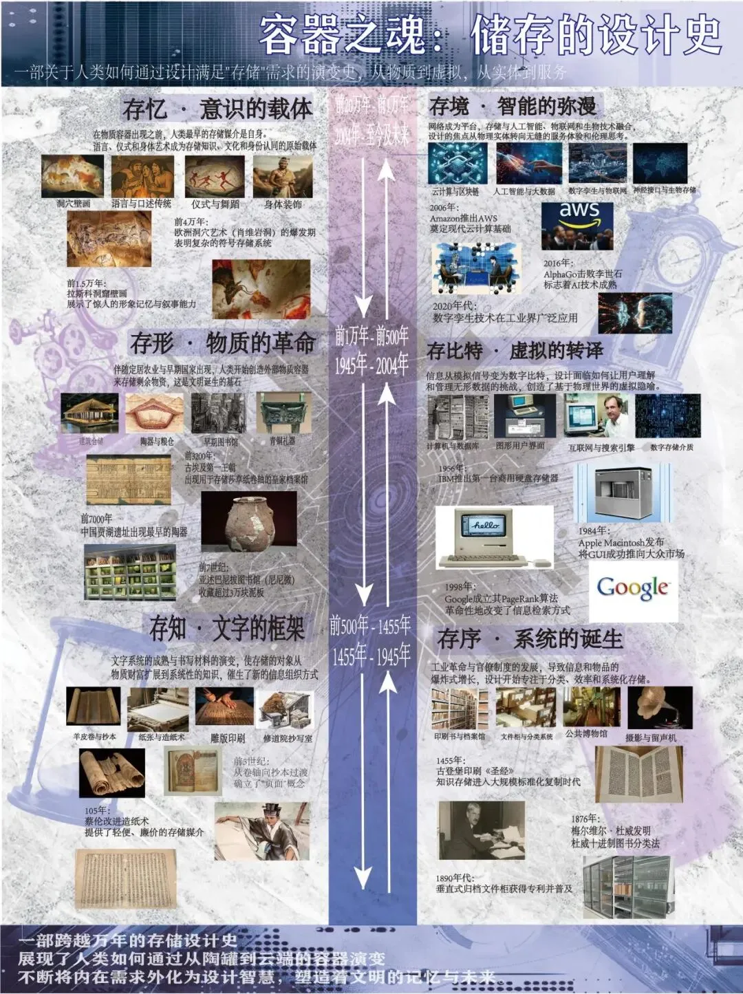 通过工业设计图谱课程的引导,让我明白设计不仅是技术与美学的结合,更是承载社会文化的编年史。课程帮我搭建系统认知框架,学会在历史脉络中解读设计作品。“设计史图谱”以“小切口、深挖掘”为要求,我以“存储”为线索,从物质容器追溯至数字云端。
