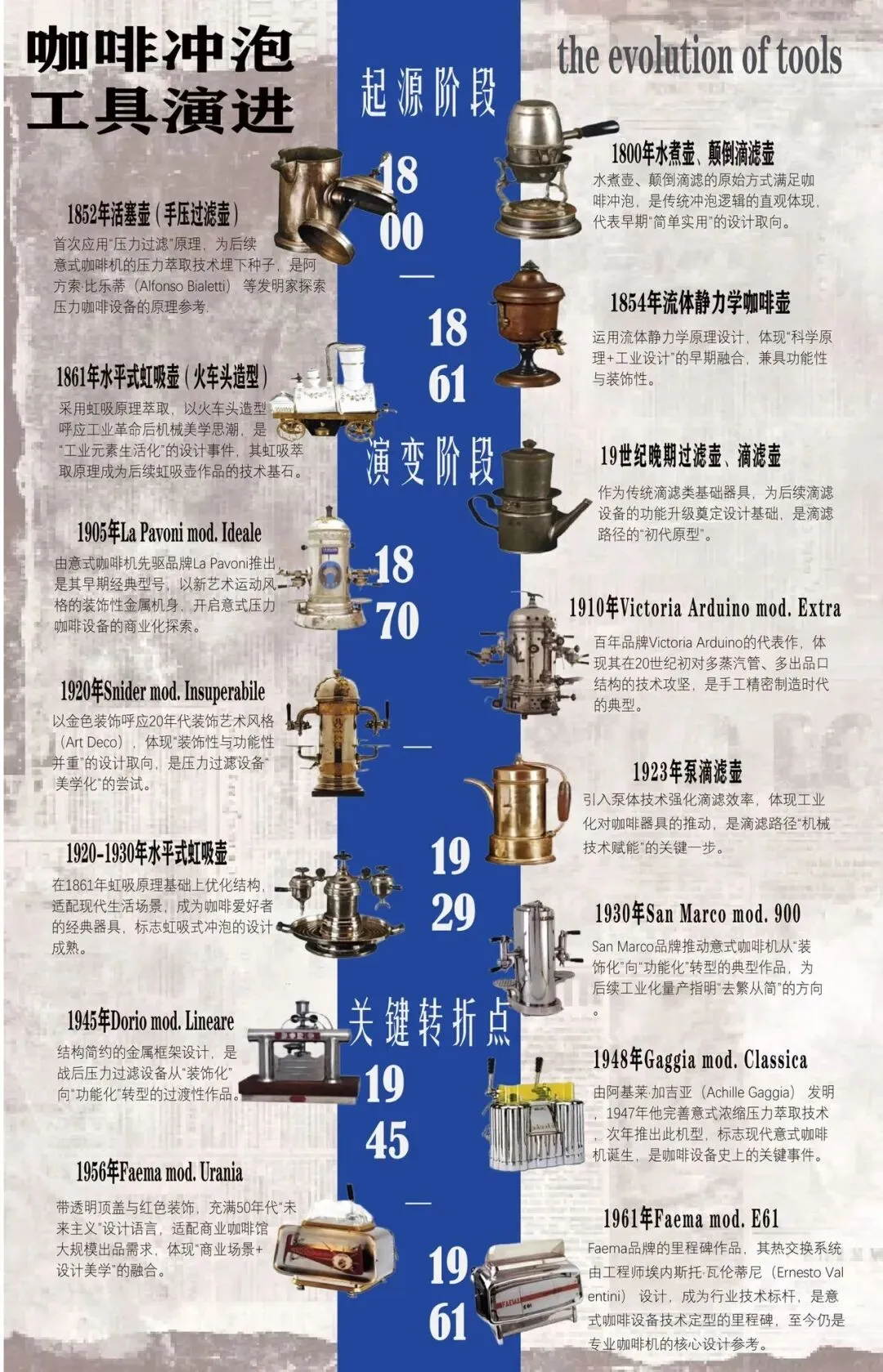 完成咖啡冲泡工具演进的设计史图谱后,我对工业设计史有了更生动的理解。此前总觉得设计史是枯燥的时间线,直到亲手梳理完咖啡冲泡工具的演变,才清晰看见技术迭代与设计美学的相互成就。