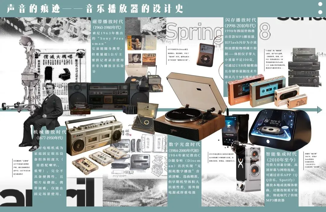 此次“设计史图谱”作业,更是将理论落地为实践:我们需要梳理百年产品脉络、整合史料与视觉元素,既锻炼了信息整合与逻辑梳理能力,也提升了版式设计与可视化表达能力,学会用清晰的图谱语言讲好设计故事。