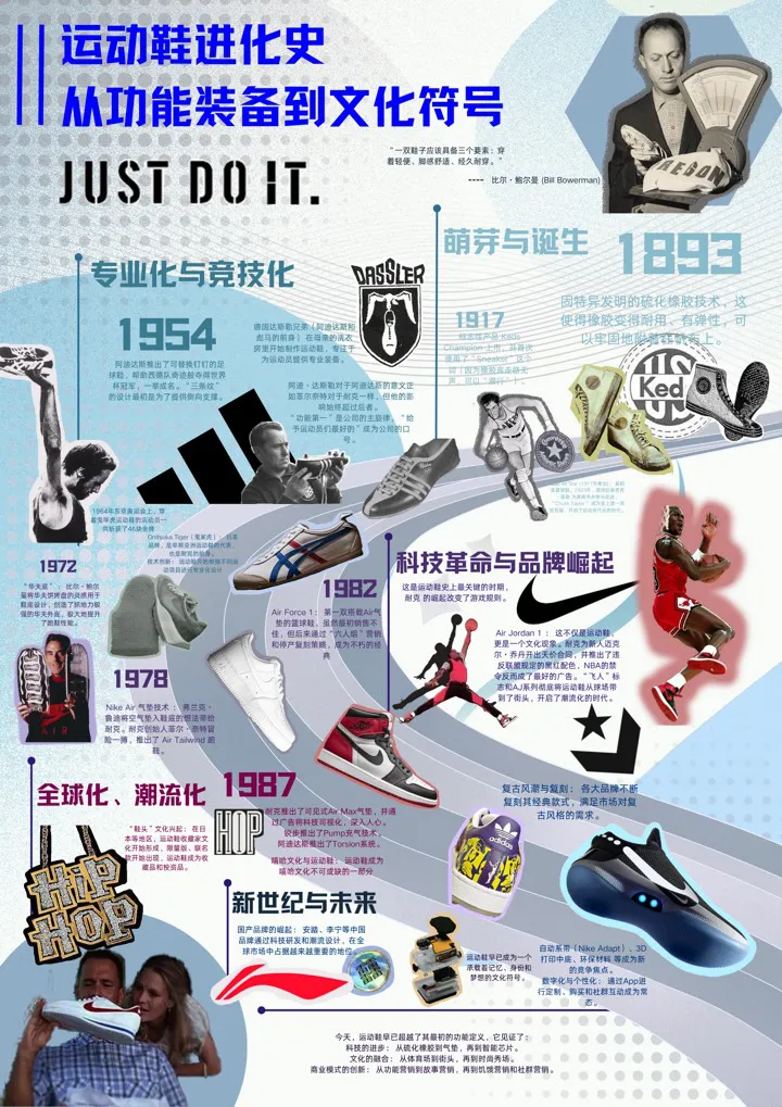 修读工业设计史课程,让我跳出单纯的设计技法,从历史维度理解了设计发展的底层逻辑,而以运动鞋进化史为主题绘制设计史图谱的结课作业,更让我将理论与具体设计品类深度结合,收获颇丰。