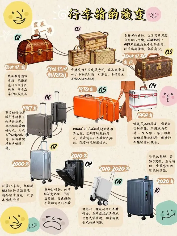 在工业设计史的课程中,行李箱的演变史让我对“设计”有了更深刻的理解。从18世纪前欧洲的圆顶木箱,到如今兼具智能追踪与个性涂鸦的出行装备,行李箱的迭代不仅是材料与技术的进化,更是一部浓缩的社会生活变迁史。