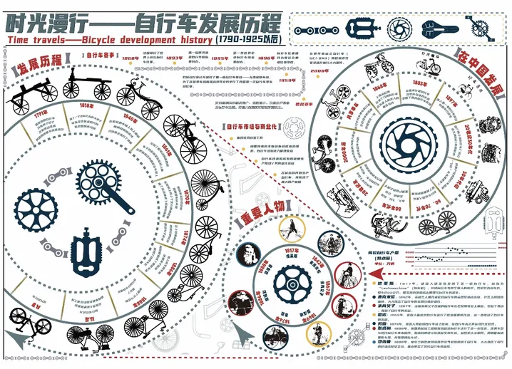 这次作业也极大锻炼了我们的能力。信息筛选上,需要在海量史料中梳理关键节点;视觉呈现上,要以时间轴为骨架,用色彩和图标让信息更易读;逻辑串联上,要清晰展现技术演进与设计理念的关联。这不仅让我更深刻理解了工业设计“以人为本”的核心,也提升了信息可视化与跨学科整合的能力,为今后的设计实践打下了坚实基础。