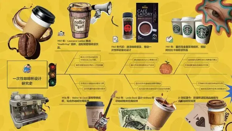 在完成一次性咖啡杯设计研究作业的过程中,我不再只关注外观造型,而是学会从历史视角思考材料、工艺、使用场景与环保理念的融合,真正体会到“以史为鉴、面向当下”的设计思维。