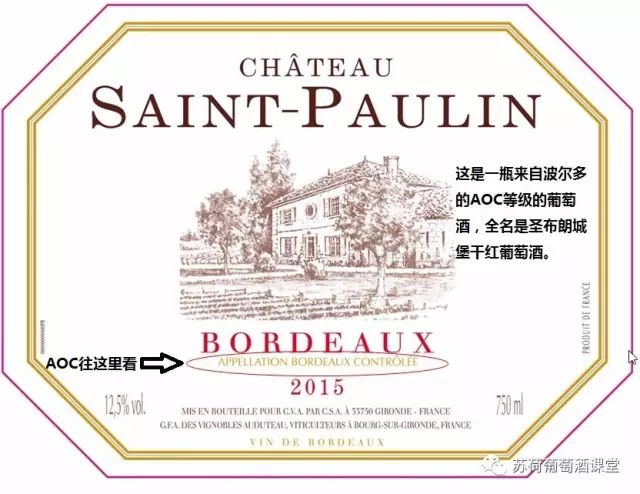 按照法文来说,AOC是Appellation d'Origine Controllee的缩写,其中Appellation的意思是名称、产区;Origine是产地、原本、根源,Controllee表示被检查、被控制。中间的单词是可以被替换成具体产地的,比如勃艮第Bourgogne、波尔多Bordeaux等,来表示这款葡萄酒是来自于何处。
