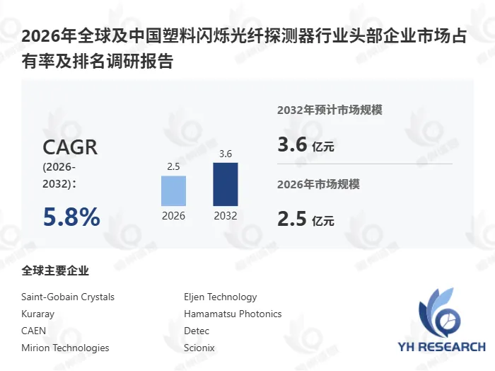 以下内容来自恒州诚思YHResearch出版的《2026年全球及中国塑料闪烁光纤探测器行业头部企业市场占有率及排名调研报告》,同时提供英文,日文,韩文等不同语种版本报告。