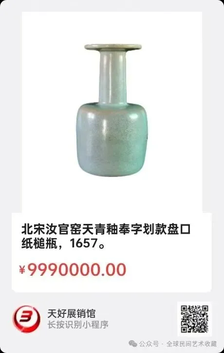 北宋汝窑天青釉长颈瓶,瓶髙:24.5㎝,口经:4.5 cm,底经:8.8 cm,重量:850 g。欣闻2026年1月7日纽约佳士得举行“东方古典艺朮珍品夜场”一件北宋汝窑天青釉长颈瓶,以2.1亿美元成交落槌的消息,我沉思片刻,赶忙从珍藏室找出我收藏的长颈瓶,这是我收藏了二十多年的重器,再次与行家反复研究,心情格外的开心,因为它是真品无疑!没有枉费我这么多年的期待!我拍好照片,该是让它在国际平台展示的时候了…!余言不叙!留给懂得汝窑的收藏家们评价。来源1711.V。