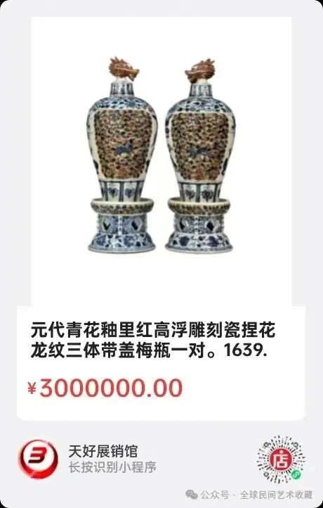 地点:《全球民间艺术收藏》《天好文化》,《天好展销馆》前二个微信公众号每期发布展讯,直接扫码进《天好展销馆》购买。