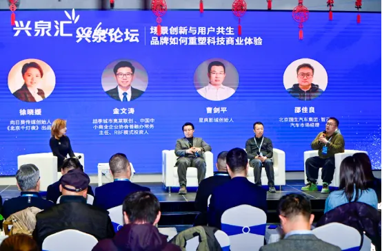 “兴泉论坛”环节由向日葵传媒创始人&《北京千灯夜》出品人徐晓媛主持,已入驻及将入驻企业代表首先围绕“场景创新与用户共生:品牌如何重塑科技商业体验”展开话题。星典影城创始人曹剑平认为,全国首创的机器人电影院用超前的理念与机器人产业园理念高度契合,将碰撞出不同凡响的火花,将为观众提供新奇特的观影体验;喆季城市奥莱代表金文涛表示,喆季奥莱的入驻,是对区域高科技人才、高消费理念的年轻客群、追求高性价比服饰消费需求的深度适配;智己汽车代表邵佳良则希望,能在这一充满科技属性的项目中,为年轻人群诠释智己汽车独特的科技化设计理念提供新鲜场域。嘉宾们一致认为,品牌与兴泉汇CGLive!深度结合,将形成非凡的空间赋能与价值共创,为科技品牌入驻提供了新思路。
