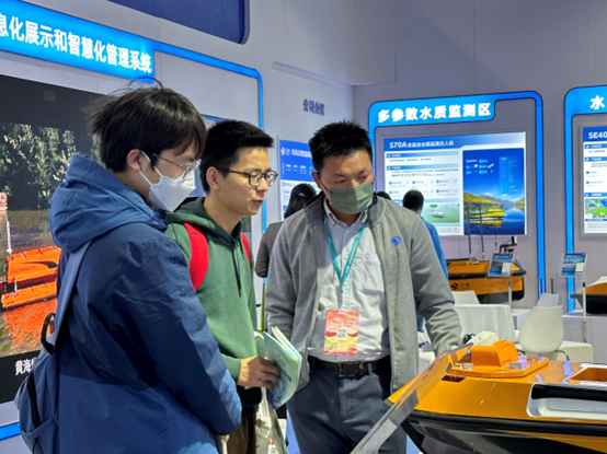 除人才专区外,同学们还参观了环境监测、“双碳”、“无废城市”等多个展览专区,丰富的环保产业展让人应接不暇:能自动完成采样及常规水质指标原位监测的无人船、用于处理固废、危废的工业连续化大型热解装备、基于无人机的大气监测平台与采样设备。大家纷纷表示对环保行业有了更深入的了解。