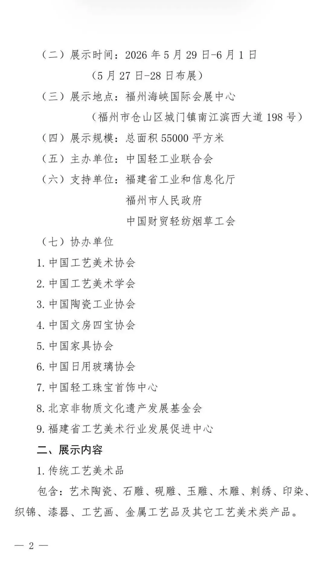 (一)展会名称:2026中国工艺美术博览会(2026 China Arts & Crafts Expo)