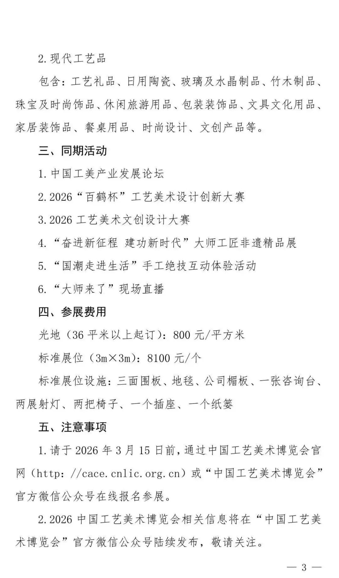 1.请于2026年3月15日前,通过中国工艺美术博览会官网(http://cace.cnlic.org.cn)或“中国工艺美术博览会"官方微信公众号在线报名参展。