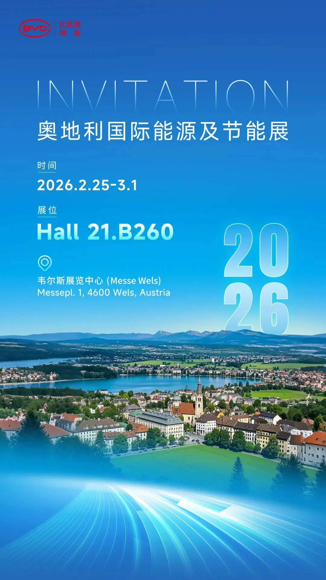 2026年2月25日,奥地利国际能源及节能展将于韦尔斯展览中心启幕。比亚迪储能将携Battery-Box HVB、HVE、HVM+等系列户储产品重磅登场,与全球伙伴共话能源趋势,探索转型新机遇。期待与您现场相见,共拓绿色能源新可能。