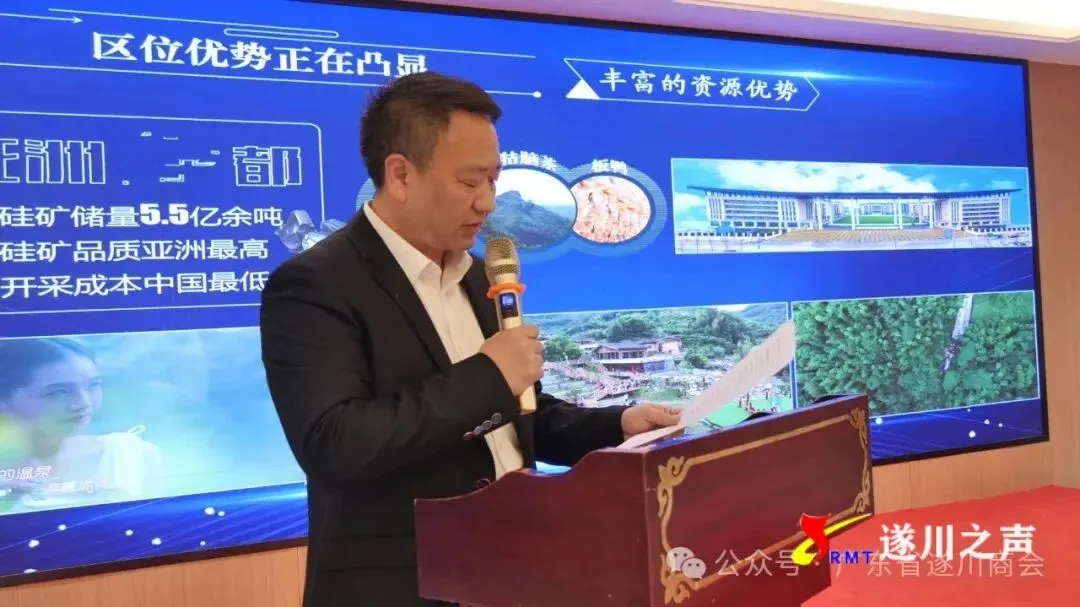 袁建国做招商推介,向与会人员介绍了遂川环境优美、资源富集、区位优越、产业兴旺、开放包容的发展现状以及生机勃勃、前景无限的发展趋势。诚挚邀请各位乡贤回乡考察,参与招商引资,加强投资合作,将对家乡的深情转化为推动发展的动力。