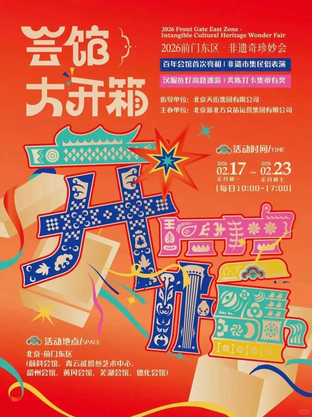 从前门大街到三里河畔,春节庙会大开箱!北京的新春活动版图,今年要“扩容”了!这一次,从前门大街的红火把年味儿延续到了三里河畔!水穿街巷的胡同和百年的会馆将在2026春节首次变身!马年开箱,大年初一至初七!快来一起,亲手拆开这份限定惊喜。