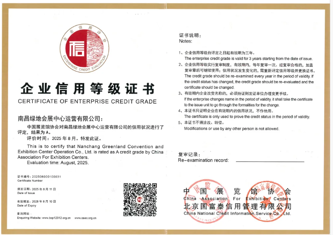 全国会展工作委员会2025年度中国会展品牌场馆、中国展览馆协会企业信用等级证书