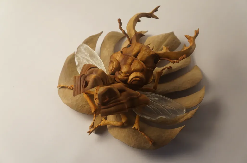陈家邦,1995年出生于台中,毕业于台湾艺术大学雕塑学系研究所。其作品以木雕为核心,长期透过饲养与观察昆虫建立关系,并以其作为感知载体,转译情绪与环境的细微变化。近年,他将视线延伸至日常对象与图样,透过昆虫外形与花纹的置换与变型,反思消费结构下的惯性与矛盾。曾获得 2019台湾国际木雕竞赛,优选 ;2018台湾艺术大学雕塑系系展,木雕类铜雕奖 ;2018第23届大墩美展,优选。
