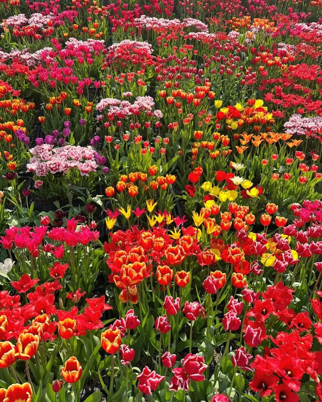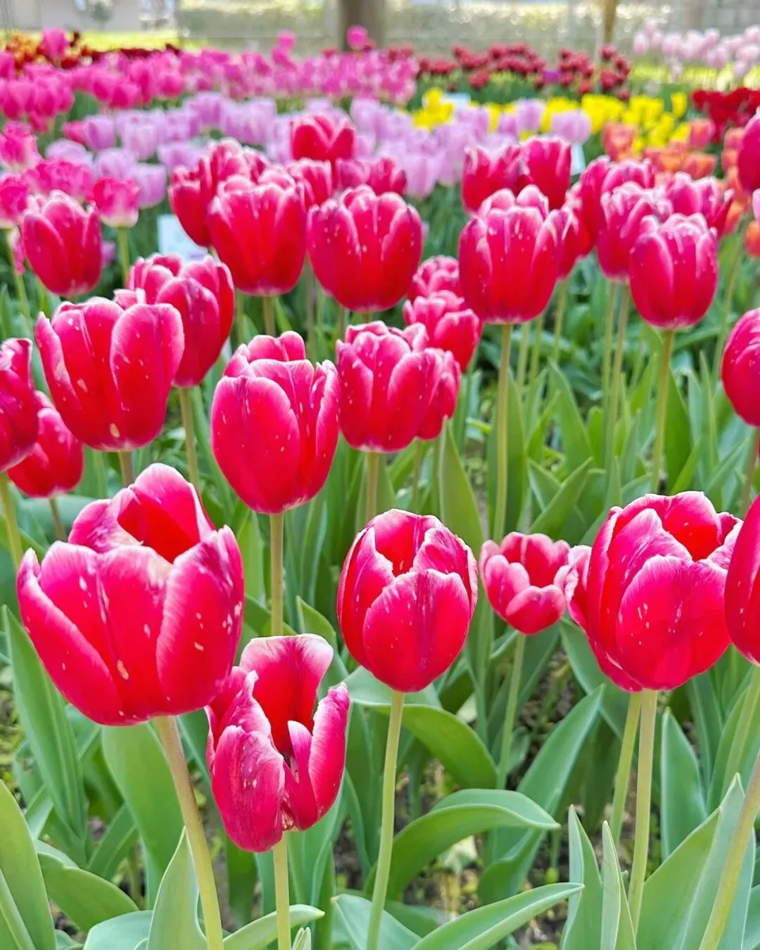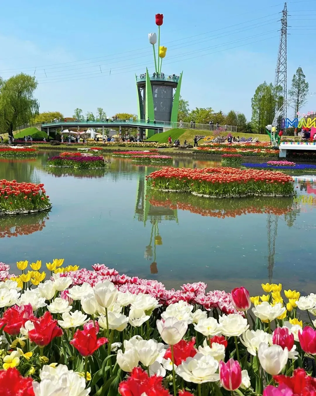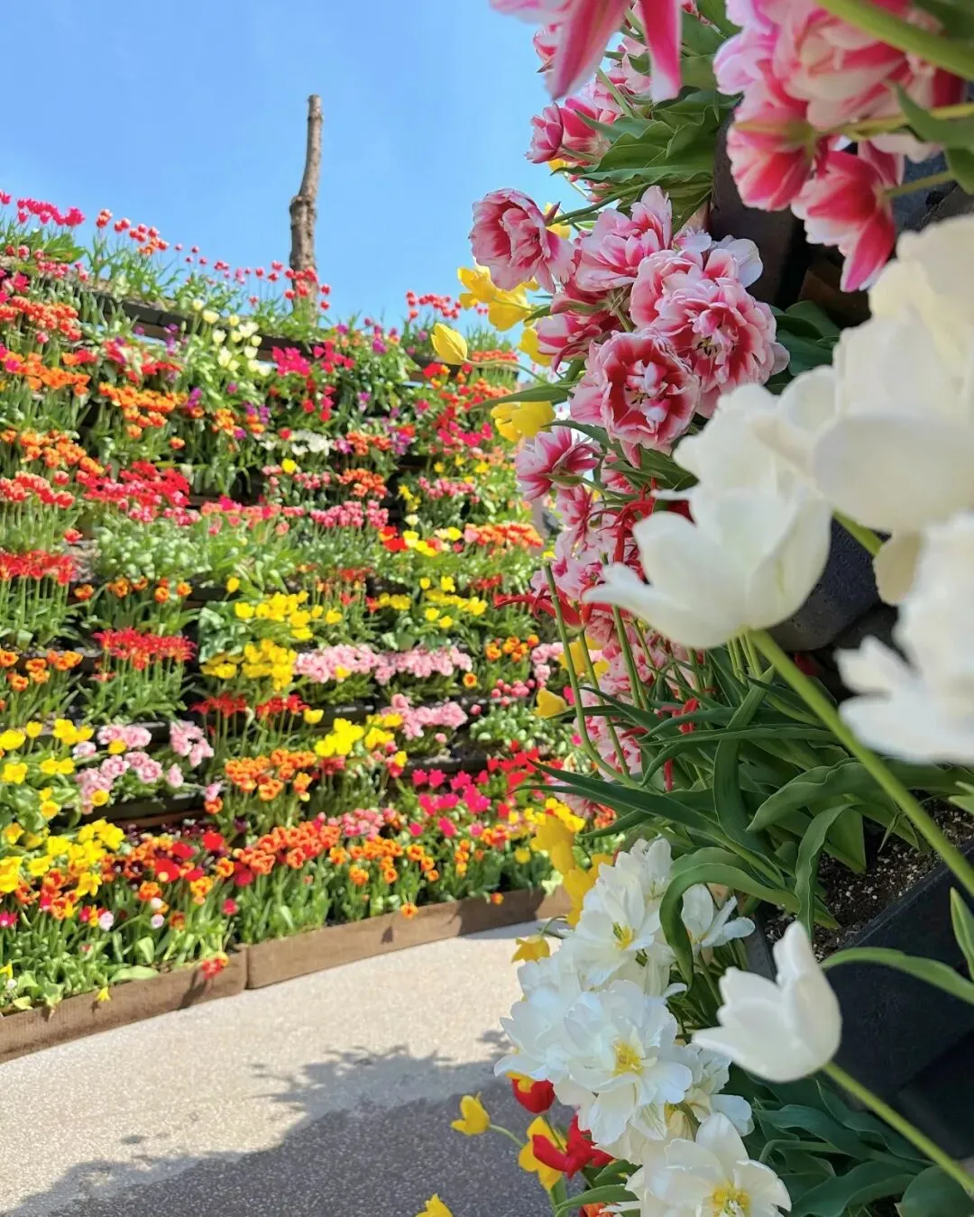 走进会场,视野瞬间被色彩填满??。不同色彩的郁金香在园内交错绽放,宛如一幅幅精心描绘的春日画卷?️。园内按照不同主题打造景观设计,从大面积铺展的花田到充满创意的花坛造型,每一个角落都极具观赏性与拍照魅力?✨。