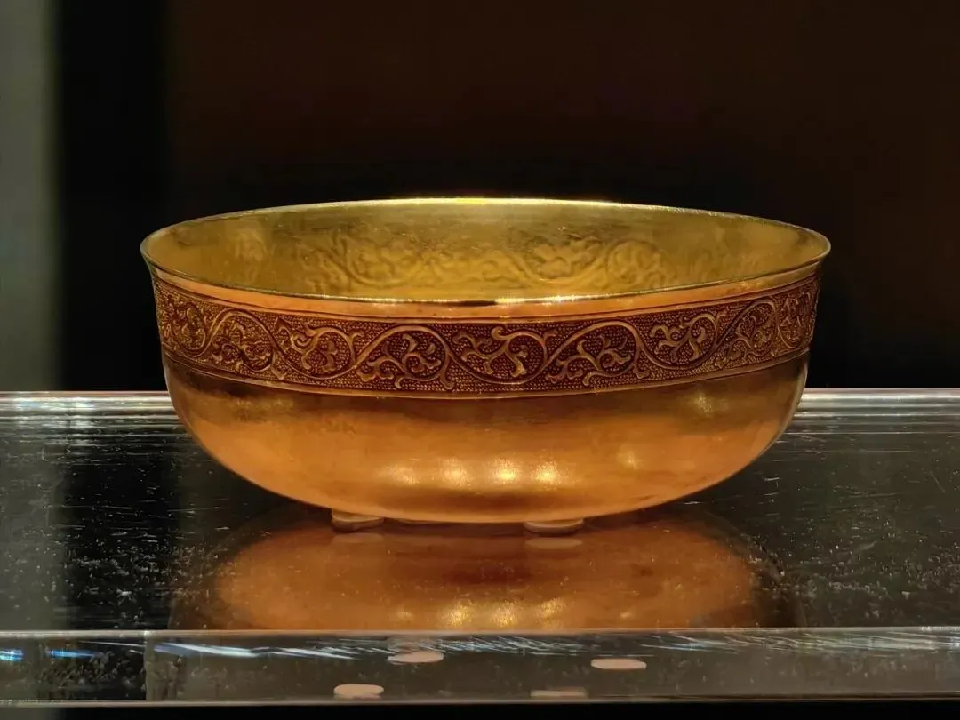 刻花折枝牡丹纹金盏●