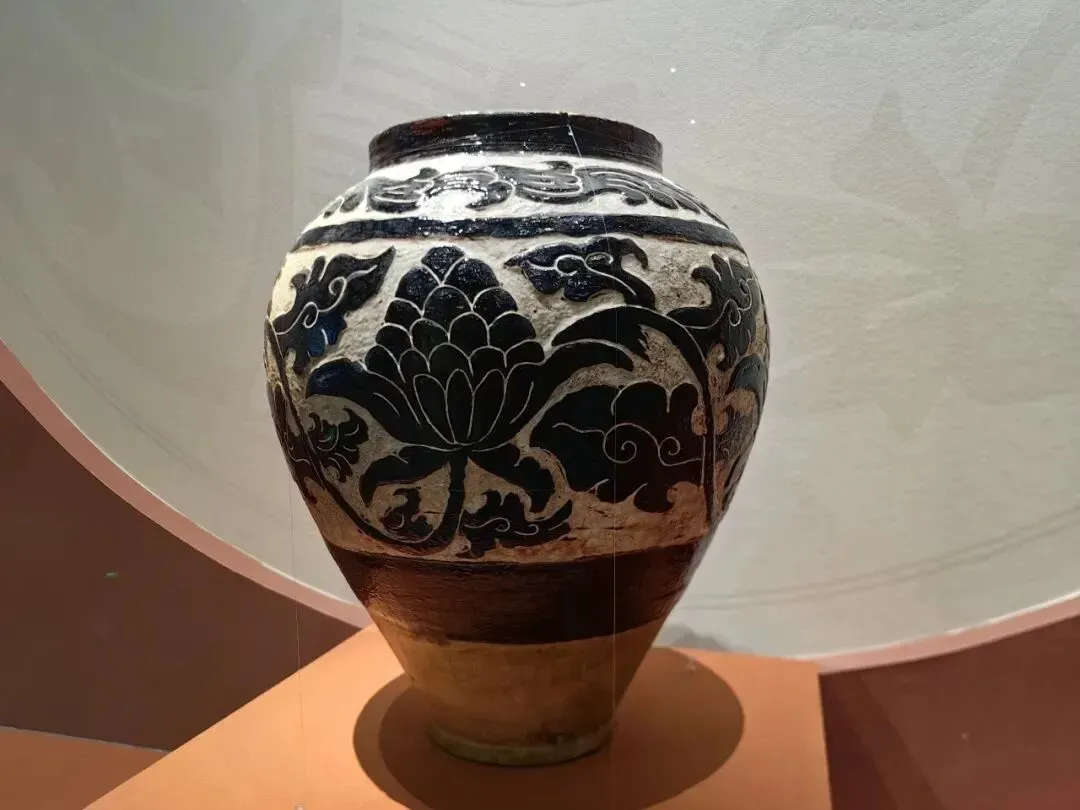 西夏 褐釉剔缠枝番莲纹瓷罐 ●