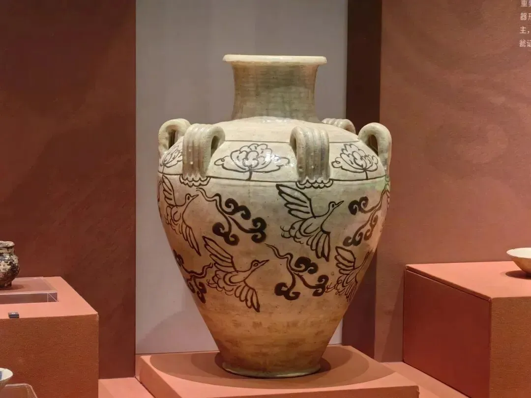 西夏 白地黑(花)彩花鸟纹六系瓮●