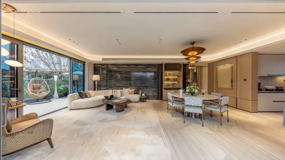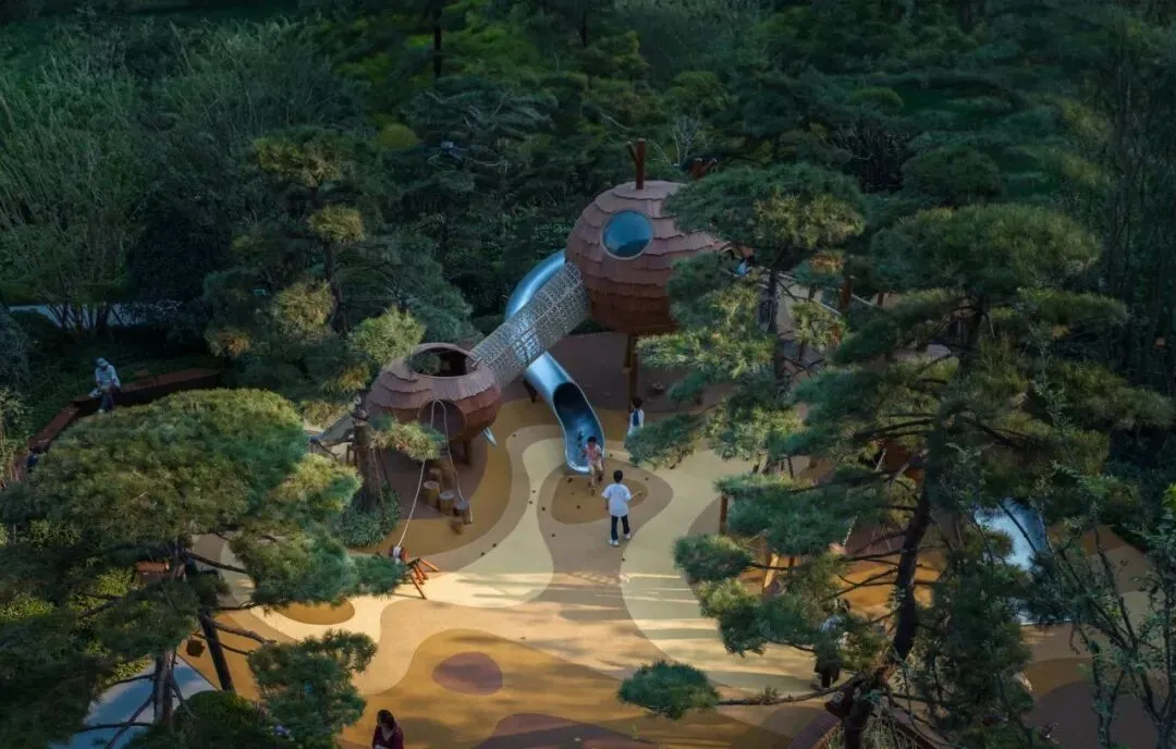 园区循“鎏泉森屿境”为营造蓝本,铺陈一场归家即入画境的自然礼序。约190米景观主轴,如仪仗列阵,串联六境主题花园,四时流转,景随身行。下沉庭院引水成幕,光影洒落,会所隐于其间,集健身、会客、休憩于一体,成为邻里相交、家人共度的静谧场域。同步引入华润置地达尔文营地IP,让孩童在草木虫鸣间启程探索,每一次下楼,皆为成长旅程。景观于此,非背景,而是生活的主角。