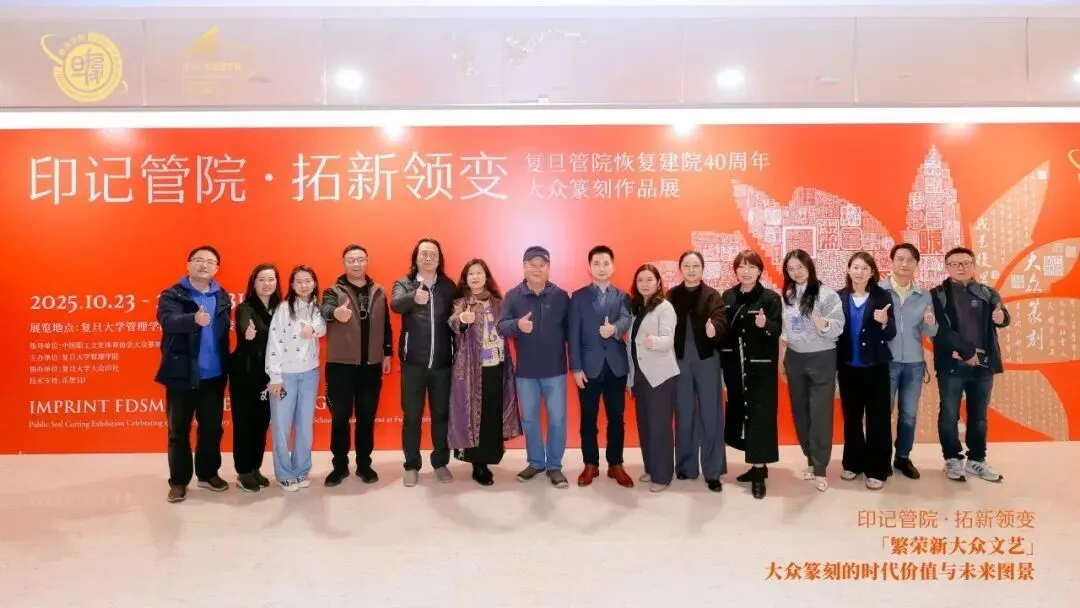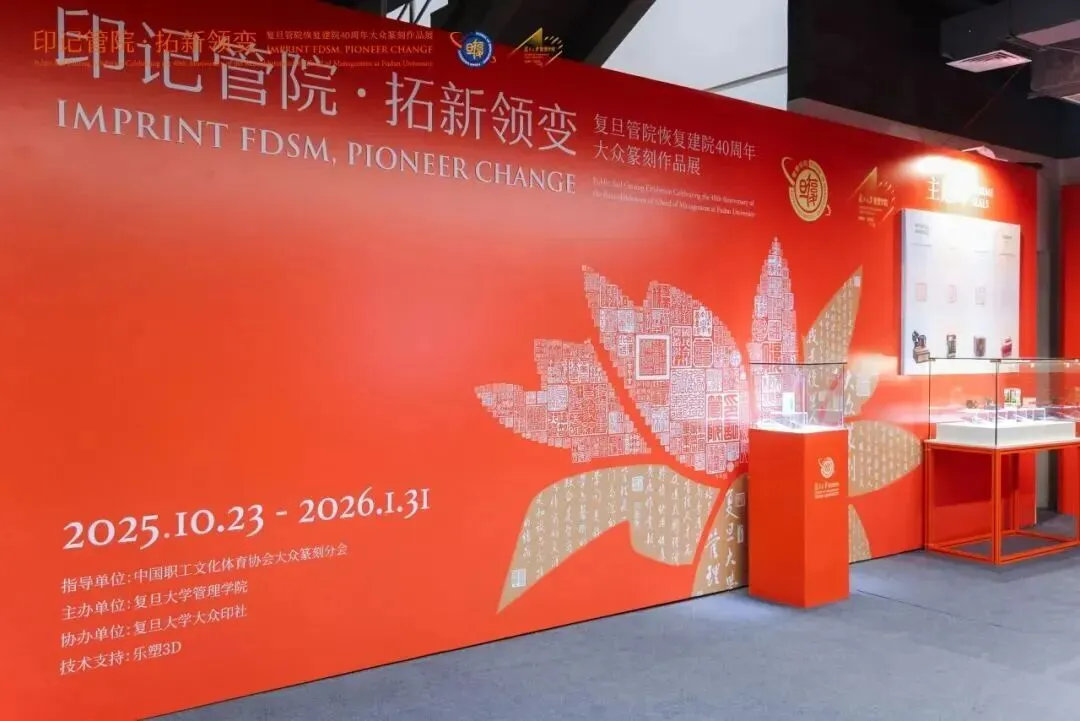 2025年10月23日,“印记管院 拓新领变——复旦管院恢复建院40周年大众篆刻作品展”在复旦大学管理学院政立院区启幕,展览持续至2026年1月31日。