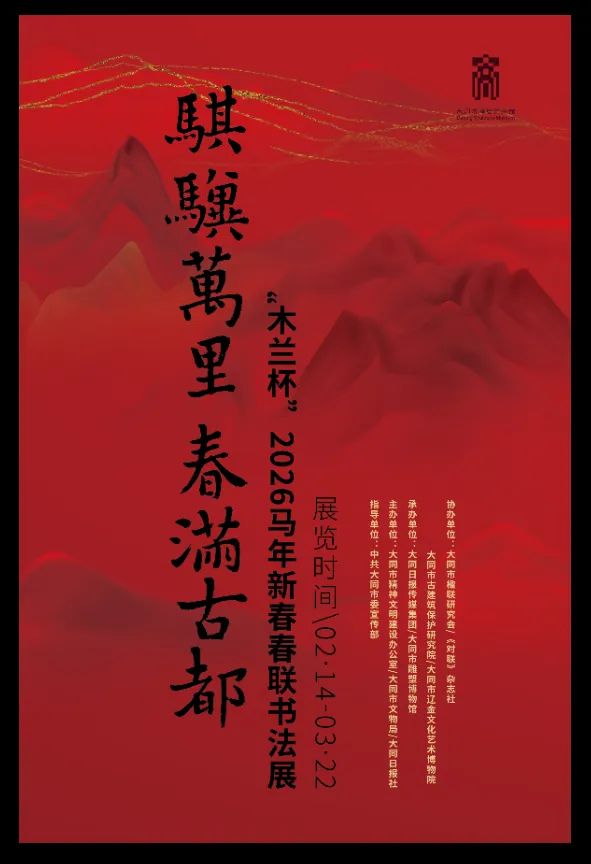 岁序更替,华章日新。当乙巳蛇年的余韵渐隐,丙午马年的足音已在古都大同回响。值此新春,大同市雕塑博物馆将为您带来一场融合书法艺术与年俗文化的盛宴 ——“骐骥万里 春满古都” 2026 马年春联书法展。