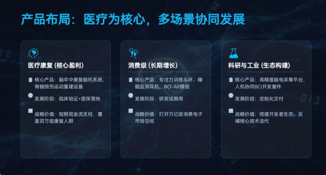 云脑智能精准卡位医疗康复+非侵入式脑机接口黄金赛道,避开消费级市场的激烈竞争,聚焦脑卒中康复、认知障碍、神经调控等医疗刚需场景。非侵入式技术路线具备低风险、易合规、可快速规模化的特点,完美契合国内临床应用与医保准入节奏,是当前最具落地价值的发展方向。